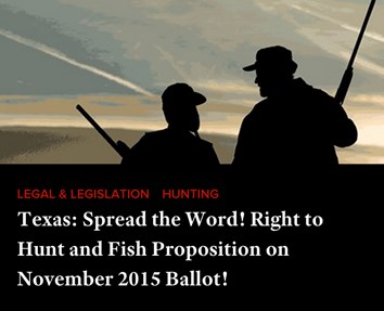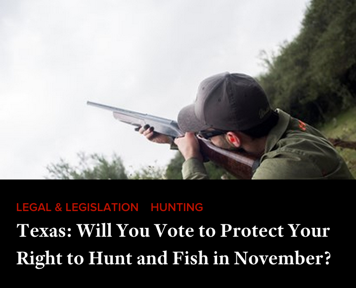 All Texans need to vote YES on this constitutional safeguard to protect wildlife and promote conservation efforts that sportsmen have spearheaded for generations. Don't let anti-hunting, extremist organizations invade Texas and destroy the state's diverse and flourishing wildlife populations!